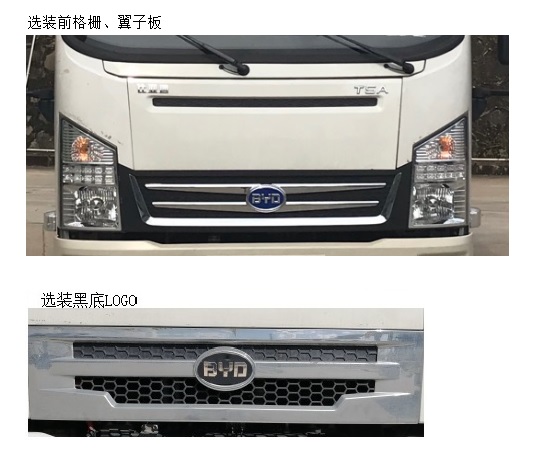 | 备注 | 选装前格栅,翼子板,黑底logo,防护装置的主要尺寸参数:侧后防护采用螺栓连接;后防护:断面尺寸为40mm×110mm,离地高度为396mm,材料为铝材质;侧防护材料为铝材质.动力蓄电池种类:磷酸铁锂蓄电池,生产企业:深圳市比亚迪锂电池有限公司.驱动电机类型:永磁同步电机,额定功率55kW,峰值功率85kW,生产企业:合普动力股份有限公司.ABS系统生产企业:瑞立集团有限公司,芜湖伯特利电子控制系统有限公司.ABS系统型号:RL-3550,BTL 24V ABS.车辆使用区域:可全国销售 | ||