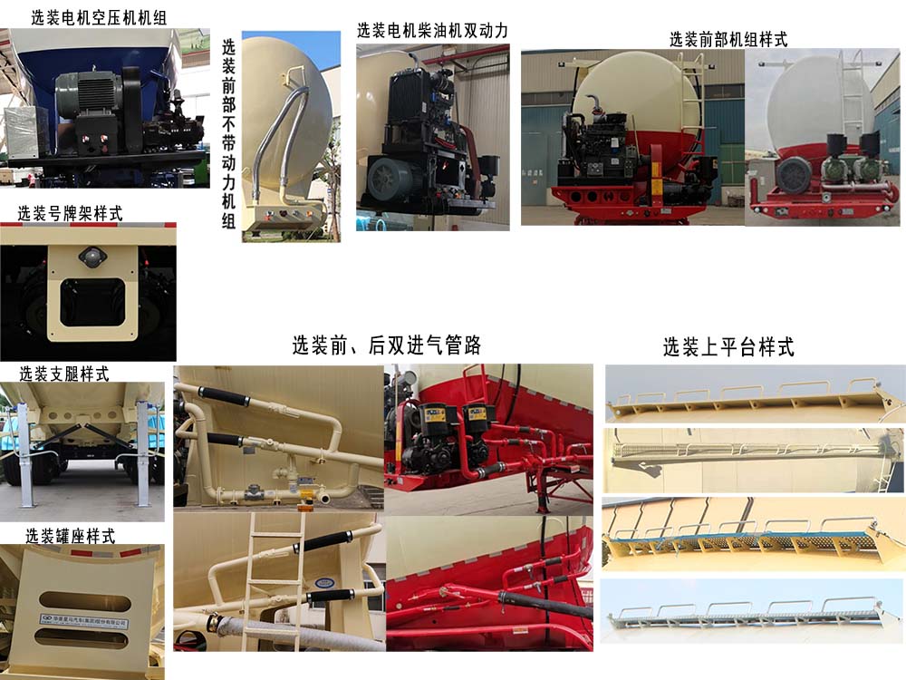 | 备注 | 1.罐体有效容积:28立方米;运输介质为固井专用水泥(密度为1200kg/m3),罐体外形尺寸:长(含封头)7799mm,最大宽度2526mm,最大截面高2955mm,前后封头直径1500mm。2.选装前部不加装机组,不带机组时外形尺寸长为8470mm,3.选装前部不带动力机组,选装前部、后部踏梯,电机空压机组,电机柴油机双动力,选装上平台、罐座、支腿样式及前后双进气管路。4.侧面防护装置材料为Q235,连接方式为螺栓连接,后下部防护装置材料为Q235,连接方式为焊接,截面尺寸为50mm×120mm,离地高度430mm.5.ABS系统控制器型号/生产企业:CM2XL-4S/2M/广州瑞立科密汽车电子股份有限公司.6.顶部封闭不可开槽,后部不可开启. | ||