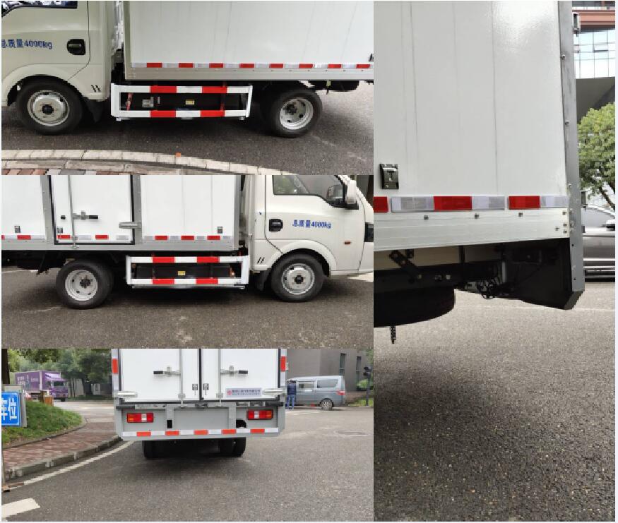 | 备注 | 1、新能源产品技术阶段:发展期。2、电池种类/型号/生产企业:磷酸铁锂电池/L173TB2)/宁德时代新能源科技股份有限公司。3、车厢顶部封闭不可开启。4、本车采用裙边舱结构作为侧防护(材料铝塑板蜂窝板,连接方式为螺栓),后防护装置与货箱尾部为一体,属加强筋裙边结构,材料为复合夹芯板,离地高度:495mm。5、电机额定功率30KW,电机峰值功率80KW。6、ABS系统生产厂家/型号:浙江亚太机电股份有限公司/APG3550500A。 7、可选装不带导流罩。8、选装铝合金材料货箱,右侧单开门,材质为铝合金平板厢;9、选装栏式侧防护:材料Q235,与上装螺栓连接,断面宽70*35mm,厚3mm,左右一致;10、可在全国销售。 | ||