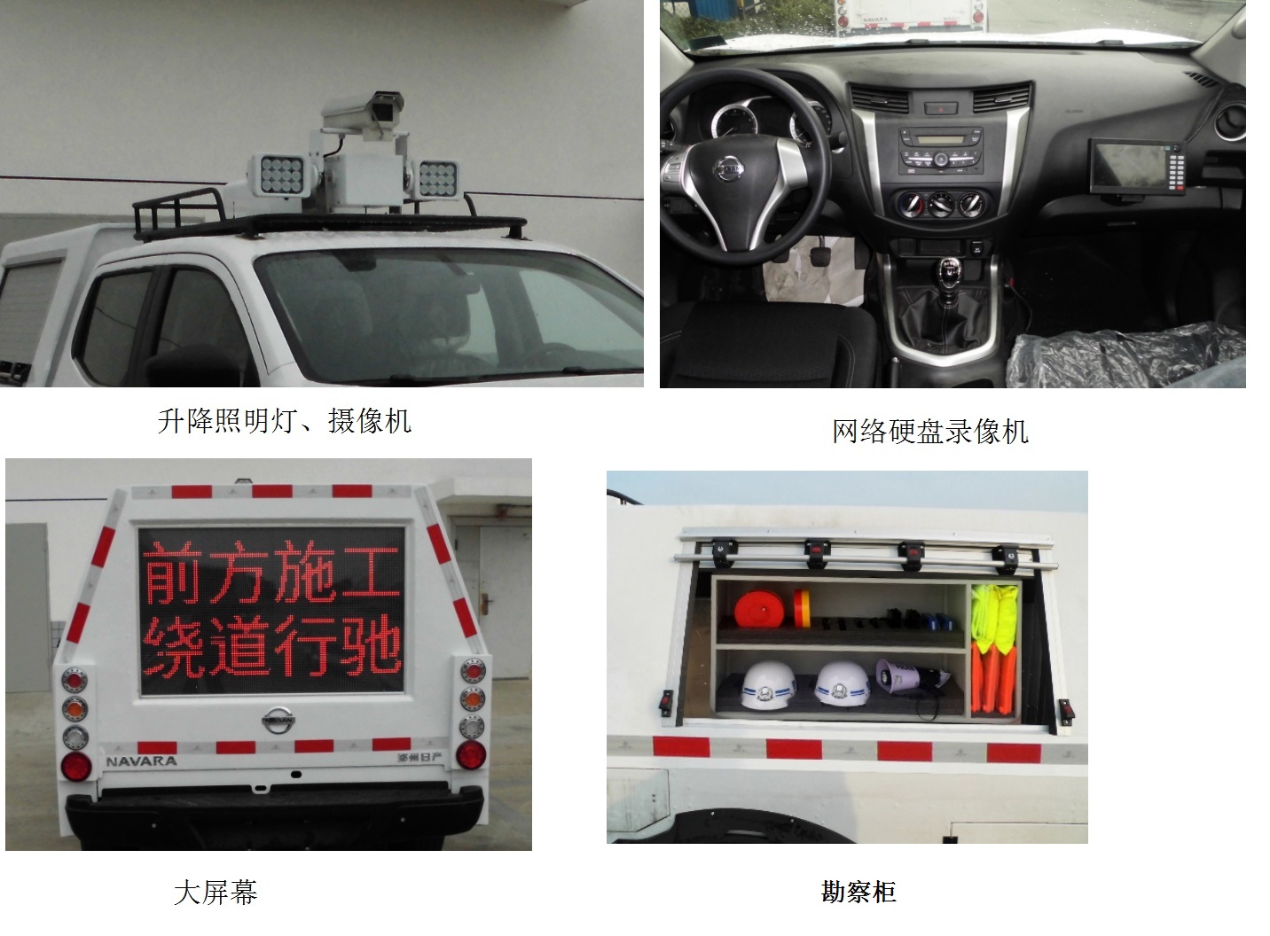 | 备注 | 装备勘察作业用升降照明灯、摄像机、网络硬盘录像机、大屏幕、勘察柜。选装不同规格的后视镜、前照灯、前格栅、轮辋。选装不带前雾灯、前雾灯罩、昼间行驶灯。选装侧踏板。ABS型号:5JGE/5JGD,ABS生产厂家:大陆泰密克汽车系统(上海)有限公司/大陆泰密克汽车系统(上海)有限公司。发动机最大净功率为129kW。 | ||
