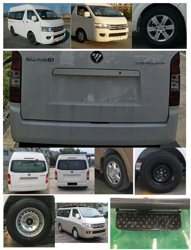 | 备注 | 1、该车安装有轮椅上下和轮椅固定专用装置,用于运送伤残人士。2.选装前雾灯、铝轮、轮罩、后踏步保险杠(U型)、不同颜色钢轮、后照地镜、后刮水器、后洗涤器、后除霜、粘结玻璃、平顶、尾门踏板;选装尾门踏板时长度为5040mm。3.选装平顶高度为:1980mm,选装平顶加换气扇高度为2080mm;选装高顶高度为2240mm,选装高顶加换气扇2340mm。4.ABS系统控制器型号/生产企业:YF8/武汉元丰汽车电控系统有限公司。5.发动机最大净功率为110kW。 | ||