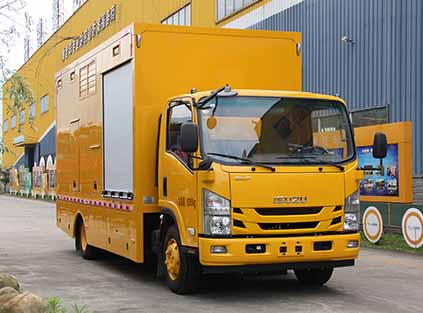 | 备注 | 1、侧防护装置为裙厢结构,材料为Q235-A,侧防护布置左右对称;后防护装置为裙厢结构,与大梁螺栓连接,断面尺寸为100×40mm,后防护下边缘离地高400mm;2、总质量、整车宽度和高度变化由选装不同的专用装置引起;3、ABS及其控制器型号为:CM4XL-4S/4M,生产厂家为:广州瑞立科密汽车电子股份有限公司;4、专用装置为工程作业设备(配电或变电设备、发电机组、电焊机、线路卷盘、水泵、便携式工具箱、作业服等),主要用于电力、市政、矿山、石化等行业的工程作业。 | ||