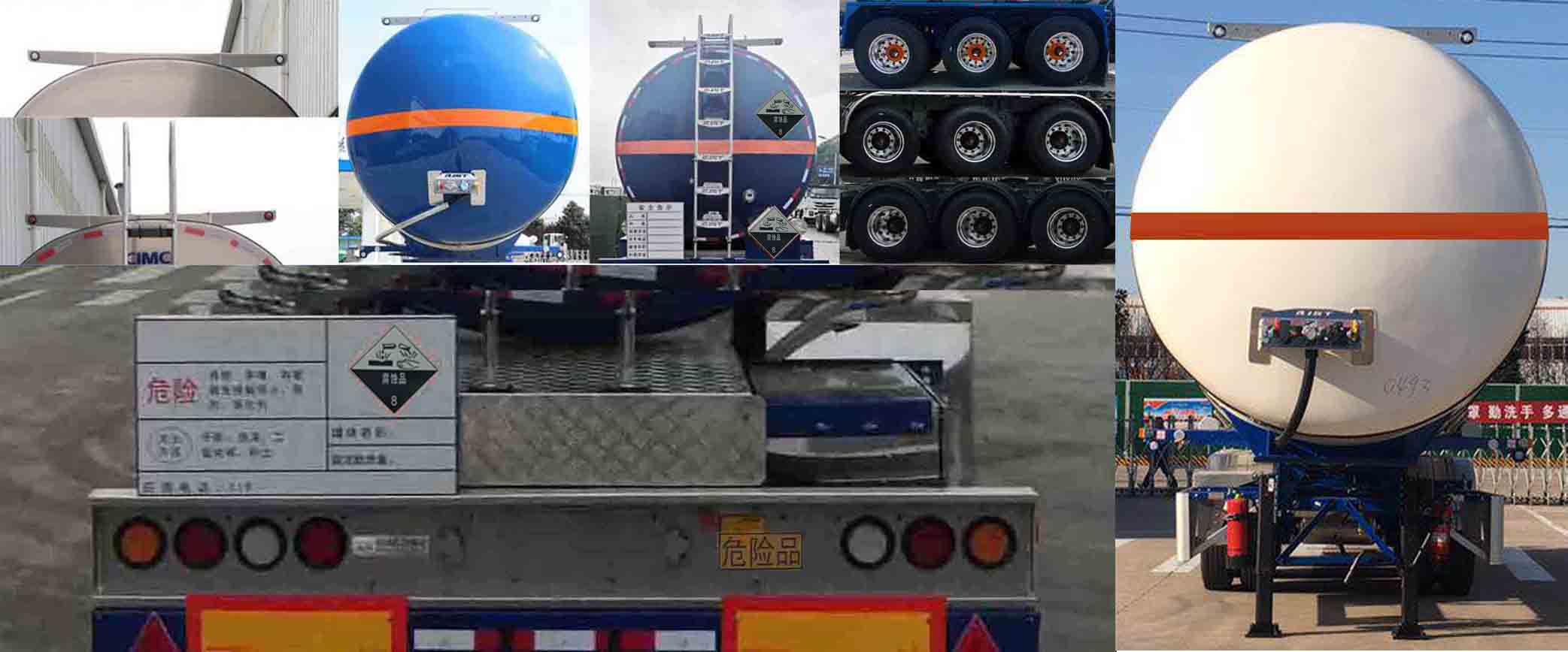 | 备注 | 罐体有效容积32立方米,罐体外形尺寸:保温外罐长10300mm,外径前φ2160mm后φ2360mm,内罐长10090mm,外径前φ1960mm后φ2160mm.运输车辆类型为AT,类项号:8.选装挡泥板,选装顶部结构,选装灯支架,选装多种胶管箱,选装工具箱位置,选装灭火器位置,选装接线盒位置,选装后部爬梯结构,选装多种蒙皮结构,选装侧面穿线管.ABS生产厂为威伯科汽车控制系统(中国)有限公司,型号为4005000810;克诺尔商用车系统企业管理(上海)有限公司,型号为K068353XXX,EBS生产厂为克诺尔商用车系统企业管理(上海)有限公司,型号为K11061XVXX,ABS生产厂为广州瑞立科密汽车电子股份有限公司,型号为 CM2XL-4S/2M.侧、后防护材质均采用Q235或铝合金,侧、后防护连接方式均为螺栓装配式,后防护离地高度为500mm,后部防护装置的断面尺寸(mm):150×60.牵引车采用适用于牵引危险品运输半挂车的牵引车. | ||