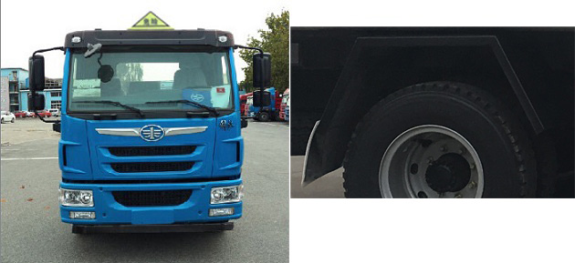 | 备注 | 随底盘选装驾驶室,仅选用具有限速装置、前盘制动、消声器前置 ,后轴空悬结构及子午线轮胎的底盘,ABS生产厂家/型号:万安科技上海万捷汽车控制系统有限公司/VIE ABS-II;仅选用轴距4700与4500.危险货物运输车辆的车辆类型:AT型车辆;;罐体有效容积为9.99立方米,罐体外形尺寸(mm)(长度×直径) 为5500x1630.罐体材质为PP,FRP;该车选装顶部围栏形式及轮罩;该车安装具有卫星定位功能的行驶记录仪.油耗值(L/100km)29.3对应发动机CA4DLD-18E5.油耗值(L/100km)29.9对应发动机CA6DLD-22E5,CA6DLD-18E5,油耗值(L/100km)28.3对应发动机CA4DK1-22E5,CA4DK1-18E5.轴距4700对应后悬2368,轴距4500对应后悬2568.载质量10800对应3人,载质量10865对应2人.类项号是8.侧、后防护的材质:Q235A;侧防护连接方式:螺栓连接,后防护连接方式:螺栓连接;后防护断面尺寸(mm):120×80,离地高度(mm):500. 该车后轴为采用空气悬架. | ||