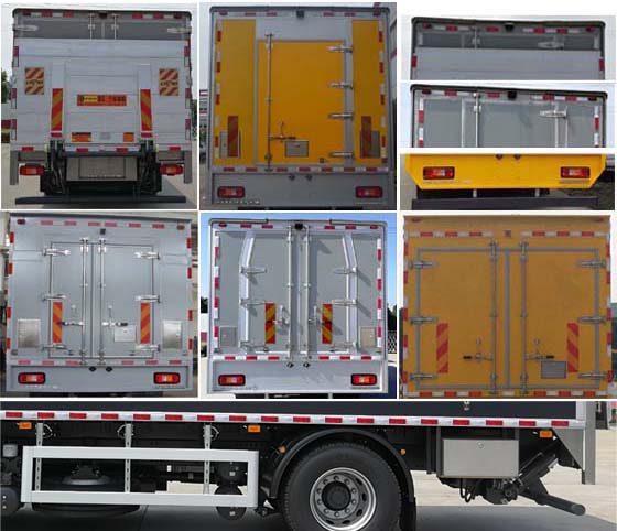 | 备注 | 选装前防撞杠,后单,双开门,后防护装置样式,液压尾板,侧翼门,导流罩;专用装置:防暴运钞厢;1.选固定厢时车长8300mm,前后悬1365/2335mm,选装前防撞杠车长为8430mm,前悬1495mm,整备质量为9900kg,载质量6905kg,6970kg;2.选液压尾板车厢时车长8500mm,前后悬1365/2535mm,装前防撞杠车长为8630mm,前悬1495mm,整备质量为10200kg,载质量6605kg,6670kg。3.选侧翼门时车长8500mm,前后悬1365/2535mm,装前防撞杠车长为8630mm,前悬1495mm,整备质量为10550kg,载质量6255kg,6320kg; 4.选侧翼门带液压尾板时车长8750mm,前后悬1365/2785mm,装前防撞杠车长为8880mm,前悬1495mm;整备质量为10850kg,载质量5955kg,6020kg;5.侧、后防护材质分别为铝合金和Q235,连接方式为螺栓;后防护断面尺寸为120×60mm和Φ121×3mm,离地高度分别为480mm和480mm;液压尾板收起长度320mm。当选装2人驾驶室时载质量6970kg,6670kg,6320kg,6020kg.5.安装具有卫星定位功能的行驶记录仪;发动机最大净功率为243kw;ABS系统控制器型号及生产厂:EBS7 ECU ,KNORR。专用装置与用途:防暴车厢等,用于银行间货币与贵重物品运输。 | ||