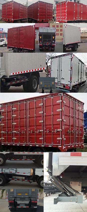 | 备注 | 该车货箱顶部封闭,不可开启。货箱侧门可封闭,选装单,双侧门货箱,厢体采用彩涂板和瓦楞板两种风格。选装前面罩,选装后视镜安装位置,选装导流罩和液压尾板,选装液压尾板收起状态水平长度280mm。选装后护栏。防护装置材料材质为Q235,螺栓连接,后部防护装置断面尺寸为(mm):50×100,离地高度为500mm。ABS型号/厂家:CM4XL-4S/4K(4S/4M)/广州科密汽车电子控制技术股份有限公司,VIE ABS-II/浙江万安科技股份有限公司。CY4SK251、ISF3.8s5154、 CY4BK451、D30TCIE1、NGD3.0-CS5D和CY4BK851发动机对应的油耗申报值分别为12.8L/100km,12.7L/100km,12.8L/100km,12.7L/100km,12.7L/100km,12.8L/100km。燃油箱与蓄电池的位置可互换。选装不同图形字标。遮阳罩为选装件。 | ||