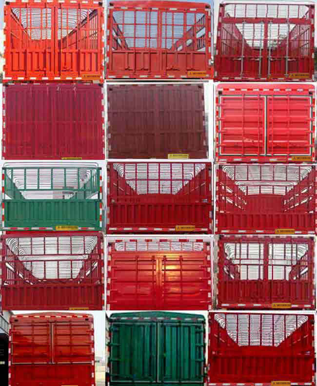 | 备注 | 车厢底板到栅栏顶部的高度为:1800mm,2000mm,2200mm,2400mm,分别对应外形尺寸高度为:3390,3590,3790,3990,后部选装花栏式后门,对开式半封闭后门,对开全封闭样式为横瓦楞,竖瓦楞,方管平板,方管十字花平板后门,选装半封闭前门,整车选装各种仓栅样式为一层仓栅,二层仓栅,三层仓栅,对开门锁杆,对开门半截锁杆,侧面选装5开门,6开门.整车货厢栏板选装竖瓦楞,方管平板,方管十字花样,在前回转半径内选装篷布框及前爬梯为选装件,选装大梁异形孔,选装挡泥板样式,选装后部推车器结构,选装左侧不带工具箱.选装后整备质量变化在3%范围内,车长/货箱内尺寸/轴距/后悬/离去角,对应关系(mm):13000/12900/6680+1310+1310/2400/12.5;13000/12900/6680+1310+1310/2300/13;12500/12400/6480+1310+1310/2100/14.1;12500/12400/6480+1310+1310/2000/14.7;12000/11900/6280+1310+1310/1800/16.2;12000/11900/6280+1310+1310/1700/17.ABS:型号:CM2XL-4S/2M,生产厂家:广州科密汽车电子控制技术股份有限公司选装ABS生产厂家:威伯科汽车控制系统(中国)有限公司型号:400500XXX0.侧防护材质Q235,选装铝合金材质,为螺栓连接,后防护采用Q235,与车架连接方式为焊接.后防护离地高度为490mm,断面为140mmX60mm。 | ||