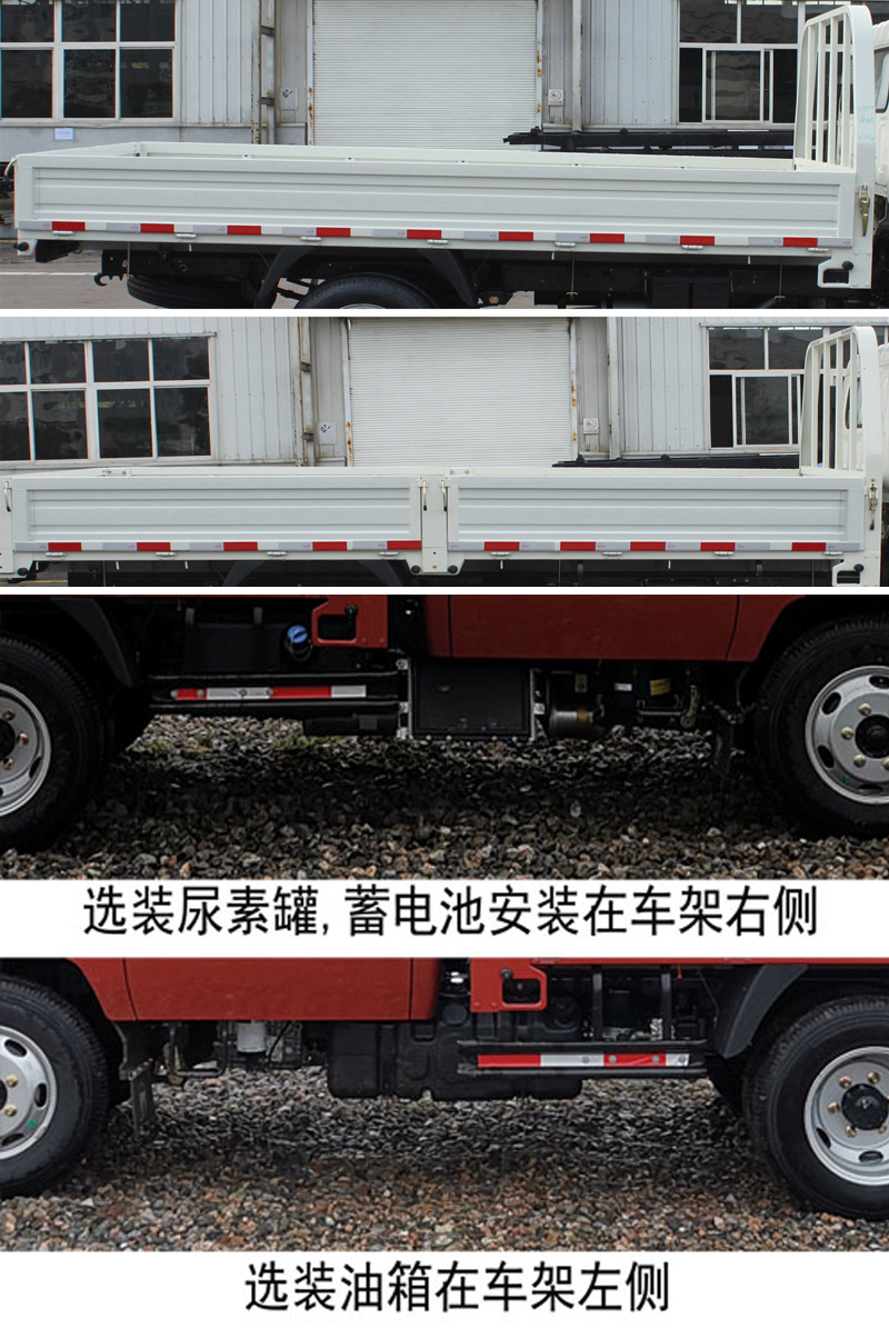 | 备注 | 侧面及后下部防护材料为Q235,连接方式均为螺栓连接,后下部防护断面尺寸100mm×50mm,后防护离地高度为450mm.ABS系统控制器型号是CM4XL-4S/4M,CM4YK,CM4YL,ABS系统控制器生产企业是广州瑞立科密汽车电子股份有限公司.选装新前围及前部灯具,可选装货厢风格,选装新风格后视镜,D19TCIE1油耗值为12.35,4A2-88C50油耗值为11.55.选装油箱安装位置;选装尿素罐,蓄电池安装位置. | ||