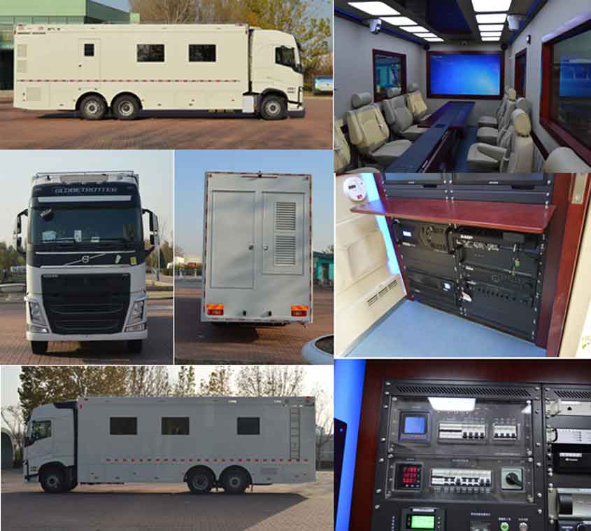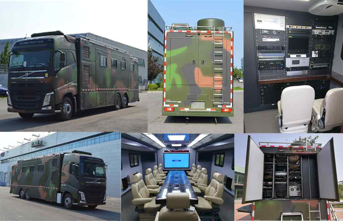 | 备注 | 顶部封闭,不可开启;该车侧防护和后防护为裙边结构,侧防护离地高为400mm,后防护最下部离地高度为490mm.可选装后爬梯,不同形式侧拉箱,遮阳棚等. ABS型号:EBS7 ECU ,生产厂:KNORR.专用装置:卫星天线,指挥设备,发电机, 发动机最大净功率为309kw.选装铝骨架铝蒙皮时,整备质量为22380kg,总质量为22510kg.扩展一种新的厢体外形和内部照片. | ||