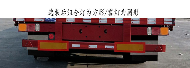 | 备注 | 仅可运输不可拆卸物体;货台空载离地高为:1150mm,1100mm,1050mm,1000mm;鹅颈部分不允许承载货物,鹅颈部分最大宽度1400mm,选装车身侧面样式,选装后部样式,选装号牌板样式,选装后组合灯方形/雾灯为圆形结构,一,ABS系统生产厂家为:山东海纳汽车科技有限公司,ABS型号规格为:HNABS4S/2m-4S/4m,二,防护:侧,后防护材料均采用Q235,连接方式:侧下部防护装置用螺栓连接/后下部防护装置用焊接连接,后防:离地高度为480mm,后防截面尺寸为140×50(mm). | ||