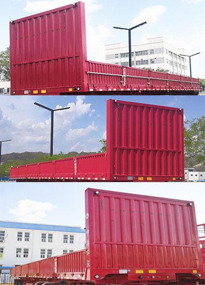| 备注 | 卸货方式为侧卸.选装货箱结构,可以向右侧翻,也可以向左侧翻,两侧箱板开门方式可以相同,也可以不相同,箱板可以向上开启,也可以向下开启,选装11开门或13开门货箱结构,选装前龙门架结构。选装合页样式,选装前厢结构,厢板可以选装左侧加装锁杠,也可以选装右侧加装锁杠,也可以选装两侧均加装锁杠。ABS系统生产厂家/型号:广州瑞立科密汽车电子股份有限公司/CM2XL-4S/2M,广州市西合电子装备有限公司/XH-GQ4S2M-E01,浙江万安科技股份有限公司/VIE-TABS Ⅱ,威伯科汽车控制系统(中国)有限公司/4005000880.后防护断面高度/断面宽度/离地高度:140mm/70mm/480mm,侧后防护材质/连接方式: 侧防护Q235或铝合金,后防护Q235/后防护焊接侧防护螺栓连接,参数对应关系(外形长/货厢长/轴距/后悬):1、11000/10780,10880/5130+1310+1310/1950,2150,2、10500/10280,10380/4930+1310+1310/1750,3、10000/9780,9880/4680+1310+1310/1600,车身主要材质为碳钢重型车时整备质量7000kg,对应额定载质量33000kg,车身主要材质为碳钢轻型车时整备质量6700kg,对应额定载质量33300kg, 车身主要材质为高强度钢时整备质量6400kg,对应额定载质量33600kg,选装外形长度及高度引起的质量变化小于3% | ||