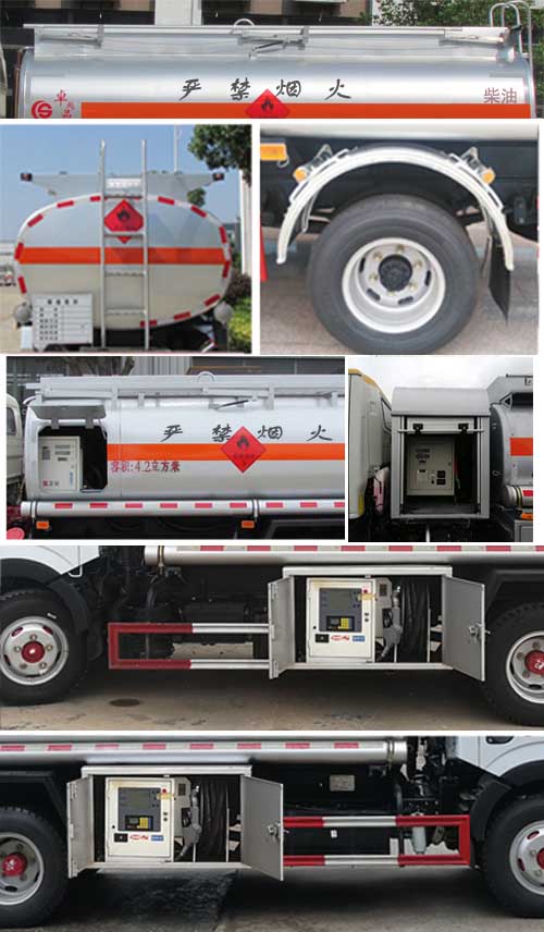 | 备注 | 1、该车适用于危险品运输,运送危险货物车辆类型为:FL型,类项号:3。罐体有效容积4.2立方米,运输介质:柴油,煤油,汽油;密度:830,800,700千克/立方米,罐体外形尺寸(长×宽×高)(mm):①加油机侧装在车架左侧或右侧:3800×1600×1030,②加油机仓装在罐体前部:3000×1700×1220。③加油机装在罐体前部:3800×1700×1220(加油机仓长800);选装罐体前部加油机仓,罐体上部选装折叠护栏,选装无上走道,选装弧形挡泥板。2、侧、后防护材料采用冷弯型钢/Q235,侧防护螺栓连接,后防护焊接,截面高100mm,截面宽50mm,下边缘离地高500mm。加油机型号及生产企业:BL1111Z/珠海市贝林加油设备有限公司中山分公司,HS1812B/托肯恒山科技(广州)有限公司,SKES-1112/恒和嘉华科技有限公司(上海伯莱机械有限公司),SK20QF-111A、SK20QF-222A/郑州三金石油设备制造有限公司,CS20D1110F/正星科技有限公司,JSK-70B1121CZ,JSK-70B1121C,JSK45B1121C/稳恩佳力佳(北京)石油化工设备有限公司, ZH6444/佛山市众泽机电科技有限公司, XTST121BF1/邢台正润通科技发展有限公司,TA-1111KFJ/沈阳航天新阳机电有限公司。3、随底盘选装驾驶室,仅选用排气管前置、限速装置(限速80km/h)、前轮盘式制动及子午线轮胎的底盘;安装带卫星定位功能的行驶记录仪。ABS型号:ABS/ASR-24V-4S/4M,厂家:襄阳东风隆诚机械有限责任公司。 | ||