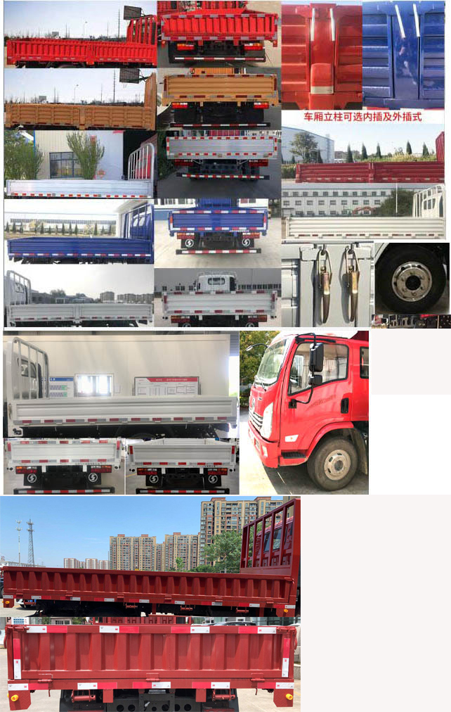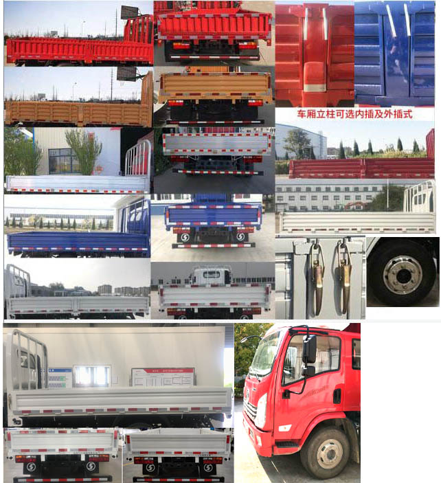 | 备注 | ABS型号:CM4XL-4S/4M,生产企业:广州瑞立科密汽车电子股份有限公司;侧防护材料Q235A,后防护材料Q345A;左右侧及后防护均采用螺栓连接;后部防护断面尺寸(mm):100×50,后防护离地高度(mm):480。可选装排半驾驶室,排半驾驶室对应的货箱栏板长3850mm。发动机/油耗(L/100km)对应关系:WP2.3Q110E50/11.4。选装多种形式的货厢。 | ||