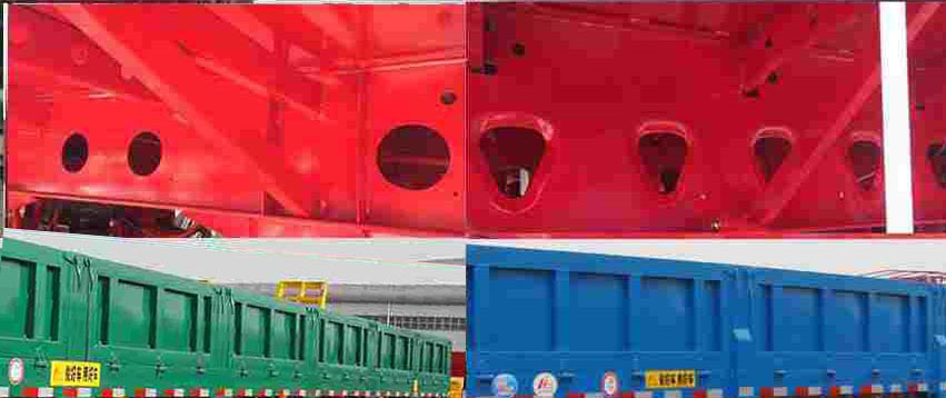 | 备注 | 卸货方式为后卸,选装侧面不开门结构,也可以侧面三开门或四开门结构,选装厢板样式,选装前部及后部结构;选装大梁冲孔结构及冲孔形状。后防护断面高度/断面宽度/离地高度:140mm/70mm/480mm,侧后防护材质/连接方式:Q235/后防护焊接侧防护螺栓连接.ABS系统生产厂家/型号: 威伯科汽车控制系统(中国)有限公司/4005000880;广州市西合电子装备有限公司/XH-GQ4S2M-E01;浙江万安科技股份有限公司/VIE-TABS Ⅱ;广州瑞立科密汽车电子股份有限公司/CM2XL-4S/2M。车身主要材质为碳钢时整备质量7600kg,对应额定载质量32400kg,车身主要材质为混合钢材时整备质量7250kg,对应额定载质量32750kg,车身主要材质为高强度钢时整备质量6950kg,对应额定载质量33050kg,外形长/轴距/货箱栏板内尺寸长对应关系:1、9300/4150+1310+1310/8630,8560;2、9000/4000+1310+1310/8330,8260; 3、8800/3900+1310+1310/8130,8060;4、8500/3800+1310+1310/7830,7760;选装不同的前部结构引起外形高度的变化,选装外形高度及宽度引起的整备质量变化小于3% | ||