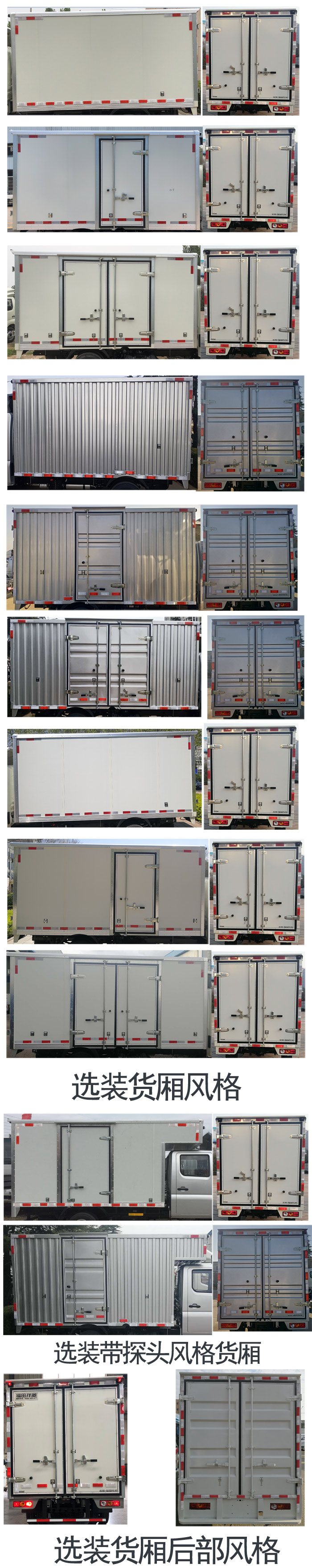 | 备注 | 货厢顶部封闭不可开启,选装带前雾灯及带昼间行驶灯造型,选装不带前雾灯及不带昼间行驶灯造型,选装带导流罩,选装彩涂板单侧开门风格货厢,选装彩涂板不带侧开门风格货厢,选装彩涂板侧双开门风格货厢,选装瓦楞板侧双开门风格货厢,选装瓦楞板单侧开门风格货厢,选装瓦楞板不带侧开门风格货厢,可选装黑色装饰条,可选装不带黑色装饰条,发动机DAM15KL,DAM16KL对应的油耗值分别为7.6L/100km,7.9L/100km,分别对应最高车速100km/h,110km/h.ABS系统控制方式是双参数控制,ABS系统控制器型号是YF9,ABS系统控制器生产企业是武汉元丰汽车电控系统有限公司.选装反光膜型反光标识.选装新款后视镜风格.选装高位进气管. | ||