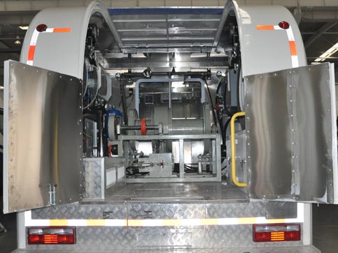 | 备注 | 该车属于油田专项作业车,在底盘基础上加装车厢、液压动力系统、电控系统、气控系统、计量系统等专用装置而成。主要用于油田测井作业。该车防护装置采用裙边结构,所用材料为铝合金型材,内部采用Q235方管加强,截面尺寸120mm×60mm×5mm,后裙边离地高度为495mm。ABS型号为:3631010-C2000,生产厂家为:东科克诺尔商用车制动系统(十堰)有限公司。该车后部选装帆布卷帘及电动卷帘装置。该车仅采用5000mm轴距底盘。 | ||