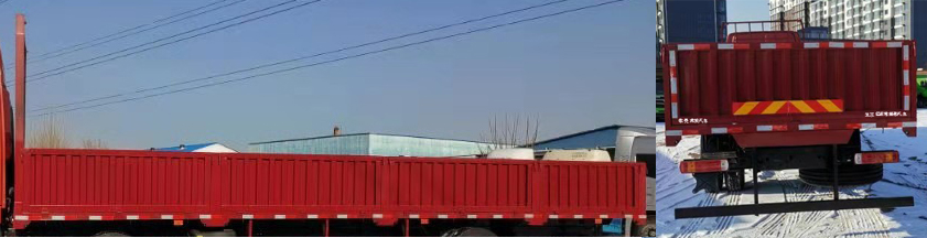 | 备注 | 选装不同型式货箱结构,选装平顶驾驶室,高顶驾驶室选装超大保险杠、导流罩、驻车空调,选装前围装饰件及前部灯具,选装后视镜,驾驶室高度对应关系:超大保险杠驾驶室、超大保险杠带驻车空调驾驶室、高顶驾驶室带导流罩整车高度为3995mm;高顶驾驶室、高顶驾驶室带驻车空调整车高度为3725mm;平顶驾驶室整车高度为3220mm,发动机D6.7NS6B290油耗申报值为32.5(L/100km).侧防护装置材料:Q235A;后防护装置材料:510L;后防护装置断面尺寸:120×50mm,后防护离地高度:500mm;侧防护装置连接方式:焊接,后防护装置连接方式:螺栓连接,ABS控制器型号/生产企业:44600XXXX0/威伯科汽车控制系统(中国)有限公司,3550X-1010/东科克诺尔商用车制动系统(十堰)有限公司,CM4XL-4S/4M/广州瑞立科密汽车电子股份有限公司.装具有卫星定位功能的行驶记录仪. | ||