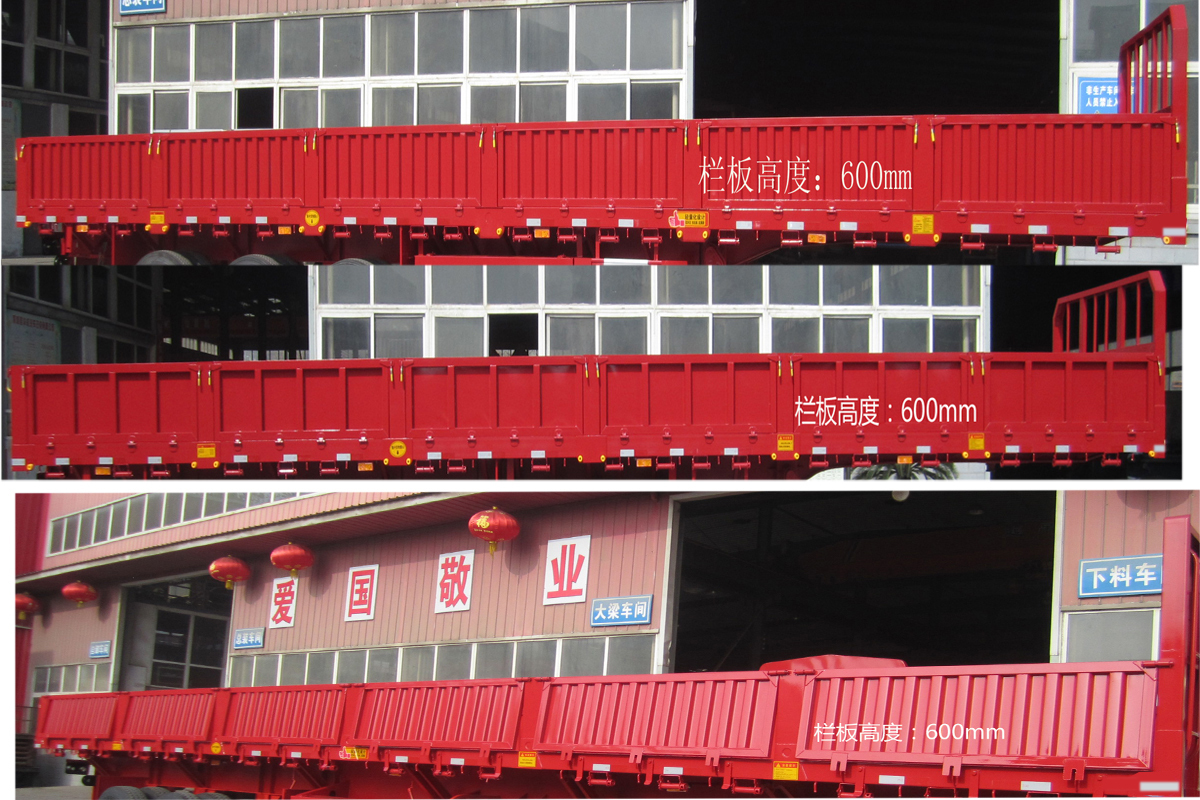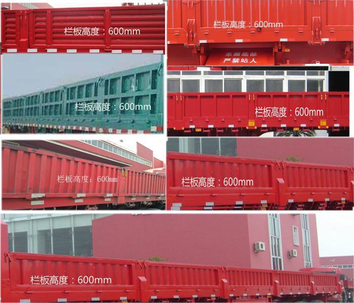 | 备注 | 该车立柱选装外插、内插式样,侧面选装5开门、6开门;整车栏板选装竖瓦楞、横瓦楞、平板、十字花式样;选装前大架式样;整车栏板式样和前大架式样可任意组合;ABS防抱死制动系统说明:西安正昌电子有限责任公司,型号:ZQFB-V型,侧面及后下部防护装置说明:左右侧防护装置为对称安装,材料为Q345 12#异型材截面高120mm,与车辆链接为铆接;后下部防护装置材料为Q345 16#异型材截面高160mm×30mm宽,与车辆链接为焊接,离地高度500mm; | ||