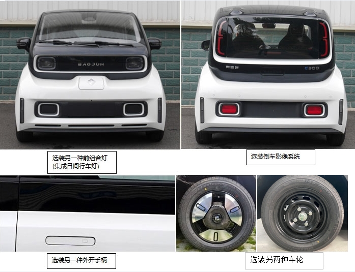 | 备注 | 该产品为新能源车辆,新能源类型为纯电动。选装:第二排单人座椅,倒车影像系统;选装另一种外开手柄、前组合灯(集成日间行车灯)、车轮。ABS型号:ABS9, ESP9,生产企业:博世汽车部件(成都)有限公司,博世汽车部件(苏州)有限公司。电动汽车储能装置种类:磷酸铁锂蓄电池,储能装置生产企业:河南省鹏辉电源有限公司,动力电池系统额定电压:112V,动力电池系统额定容量:150Ah;驱动电机峰值功率:29kW。两座对应总质量1050kg,整备质量885kg、900kg;三座对应总质量1155kg,整备质量 905kg、930kg。 | ||