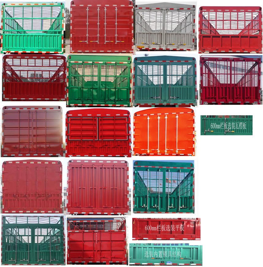 备注 | 该车可选装侧开门数量和栅栏高度,与车高一一对应仓栅顶部至承载面高度分别为1800mm,2000mm,2250mm,2450mm;前部可选装竖波纹式、无上框式、井字架式;侧面可选装栏板平板式、侧开门式、仓栅固定式、单层仓栅式;后部可选装全封闭式,可折叠式,仓栅式。车长/前悬/轴距/后悬对应关系:9010/900/4600+1310+1310/890;9510/1000/4800+1310+1310/1090;10010/1100/5000+1310+1310/1290。该车装备ABS生产企业为广州市科密汽车制动技术开发有限公司,型号为CM2XL-4S/2M。侧面及后下部防护装置所用材料材质为Q235,侧防护为螺栓连接方式;后下部防护为焊接连接方式,断面尺寸为160mm×60mm离地高度为540mm。 |