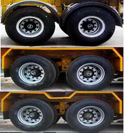 备注 | 该车用于运送20英尺集装箱或箱罐,牵引销处车架高度为90mm.选装挡泥板结构.选装侧防护样式.选装车身颜色.该车ABS系统型号:SAD-ABS4S/2M,CM2XL-4S/2M;ABS系统生产厂家:梁山顺安达汽车科技有限公司,广州市科密汽车制动技术开发有限公司.侧下部防护装置及后下部防护装置,材料材质:Q235;连接方式:侧下部防护装置用螺栓连接,后下部防护装置用与车架焊接的方式连接,后下部防护装置的断面尺寸:140mm×50mm;离地高度为520mm. |