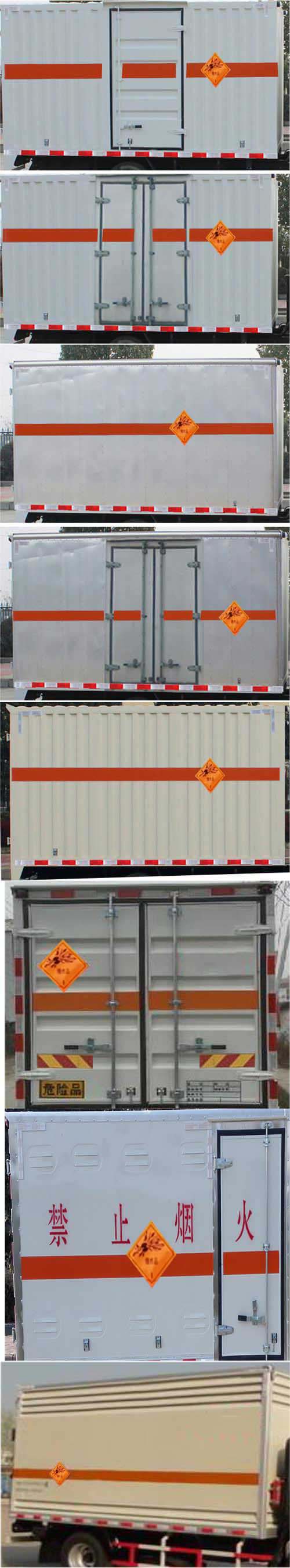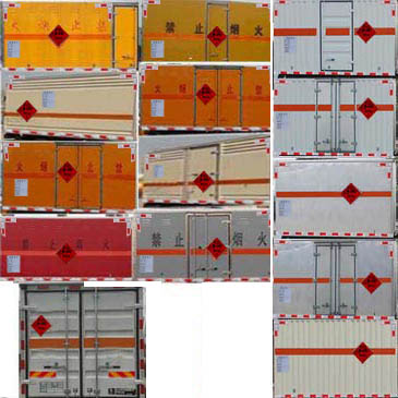 备注 | 厢体顶部封闭,不可开启。该车为危险品运输车。随底盘选装驾驶室.前面罩,前组合灯具.运输品名:黑火药,压缩黑火药,炸药,雷管,类项号:1.1B,1.1D,1.1G,1.2G,1.3G.厢体侧面板选装开百叶窗,选装不带侧门,侧门型式及位置;厢体颜色可变化,文字喷涂位置可变化.侧面及后下部防护装置材料为Q235,与车架采用焊接连接.后下部防护装置断面尺寸(mm):120×50,离地高度:520mm。选装液压升降尾板,选装液压尾板时收起状态的水平长度为300mm,仅采用排气管前置、子午胎,限速装置,辅助制动装置和前盘制动器的底盘;限速80km/h.安装具有卫星定位功能的行驶记录仪; ABS系统生产厂家,型号 :焦作博瑞克控制技术有限公司,J ABS.安装具有卫星定位功能的行驶记录仪.仅采用10.00R20 18PR,295/80R22.5 16/18PR轮胎。 |