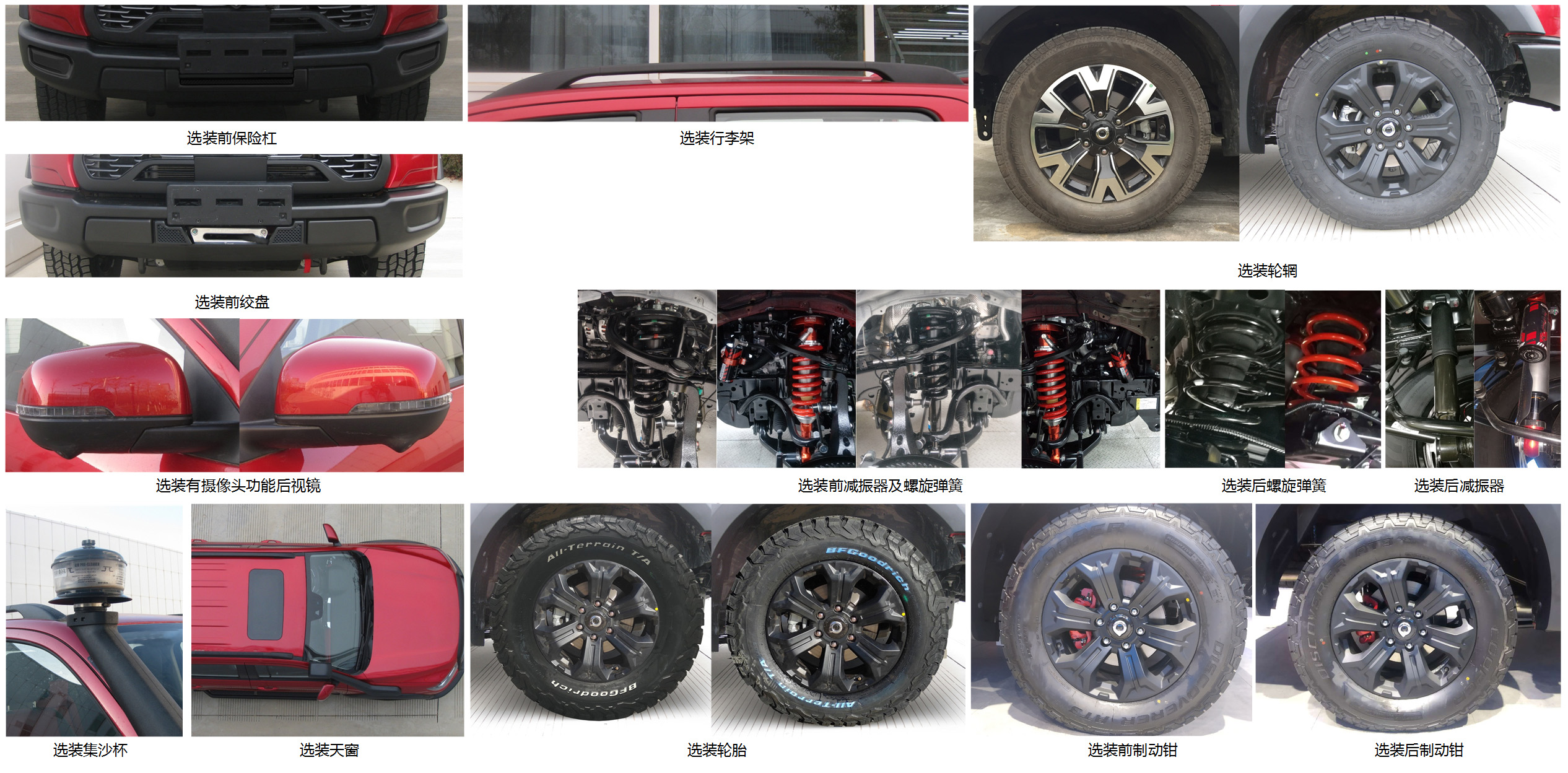 | 备注 | 选装前保险杠,前绞盘,有摄像头功能后视镜,集沙杯(此时车高为1918mm),天窗,行李架,轮胎,轮辋,前减振器及螺旋弹簧,后螺旋弹簧,后减振器,前制动钳,后制动钳.牵引挂车时,中置轴挂车的牵引杆深入量为50mm,中置轴牵引杆连接器最大负荷为100kg.ABS型号及生产企业:ESP9/博世汽车部件(苏州)有限公司.发动机净功率值为140kW. | ||