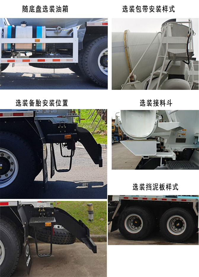 | 备注 | 1.搅动容量为7.59立方米,罐体外形总长度(含封头)5960mm,最大直径2250mm,罐体安装角度为13.2°;2.侧面,后下部防护装置的材料均为:Q235钢板,连接方式均为:螺栓连接;后下部防护装置断面尺寸为:50mm×120mm,离地高度为480mm;3.选装进料斗样式和挡泥板样式;随底盘选装尿素壶和后处理的安装位置,随底盘选装油箱,选装备胎安装位置,选装包带安装样式,选装接料斗;4.安装具有卫星定位功能的行驶记录仪;5.ABS型号:CM4XL-4S/4M,广州瑞立科密汽车电子股份有限公司;6.发动机型号/油耗(L/100km)对应关系:WP8.320E51A/37.3,WP9H350E50/37.1; | ||