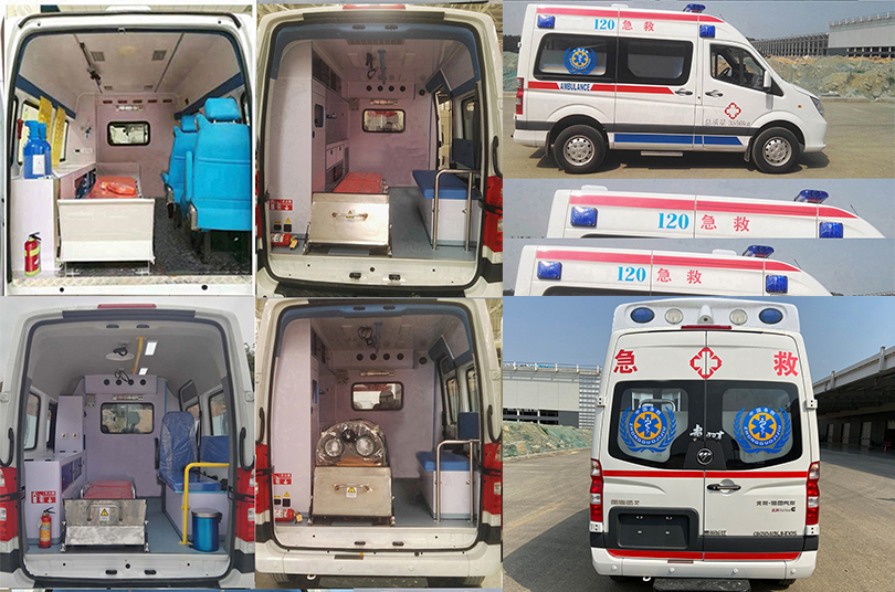 | 备注 | 1.随基础车型选装前雾灯、平推窗、前格栅、前保险杠颜色、铝轮、轮罩、轴头盖、倒车雷达、后视镜、270度后对开门门铰链;2.选用发动机最大净功率为130kw;3.ABS型号:YF8,生产企业:武汉元丰汽车电控系统有限公司;4.随基础车型选装外挂式踏步时整车长度为5065mm,选装集成踏步时整车长度为5015mm;5.随基础车型选装有卫星定位功能的行驶记录仪;6.该车配备医疗器械柜、氧气瓶、担架、消毒灯、特种车辆标志灯及警报器等专用装置,用于对伤病员的紧急救护或转运;7.装简易医疗设备时整备质量为2450kg,装监护型医疗设备时整备质量为2600kg,装高配医疗设备时整备质量为2750kg;8.选装异形警灯且选装不同规格顶部换气扇时高度为2485mm、2555mm,选装薄款或普通长排警灯或异形警灯时高度为2580mm,选装高脚长排警灯或圆柱形警灯时车高为2620mm,选装尾部警灯罩及异型警灯时车高为2700mm;10.选装外挂侧滑门踏板;11.选装其它型式爆闪灯、照明灯;12.该车型可选装ETC车载装置. | ||