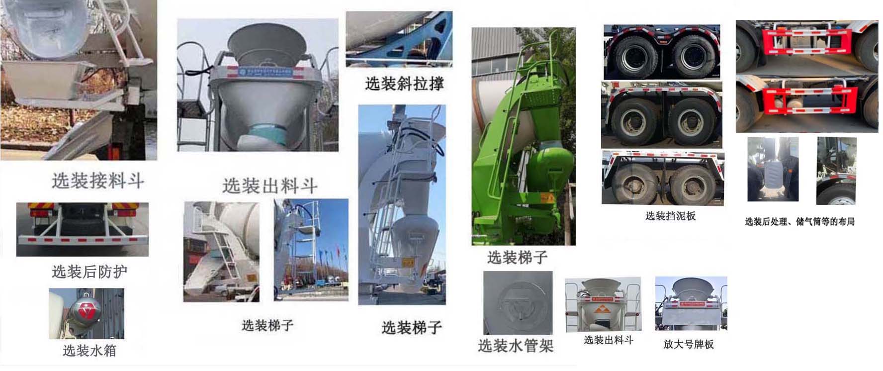 | 备注 | 罐体搅动容量7.95立方米.罐体总长6050mm,最大直径2220mm.罐体安装角度14.7°.侧后防护材质:Q235.侧防护支撑座与副车架焊接,侧防护与支撑座螺栓连接,后防护与车架螺栓联接,后防护断面尺寸:120mm×80mm,后防护离地高度:460mm.安装具有卫星定位功能的行驶记录仪.ABS生产厂家/型号:浙江万安科技股份有限公司/VIE ABS-II..发动机WP8.320E51A油耗值37.44L/100km.发动机WP10H375E50油耗值37.0L/100km.随底盘选装新结构的保险杠等,该车安装限速装置,限速89km/h.选装接料斗、出料斗、后防护、挡泥板、梯子、斜拉撑、水管架、水箱、进出料斗、放大号牌板等;该车型可选装ETC车载装置 | ||