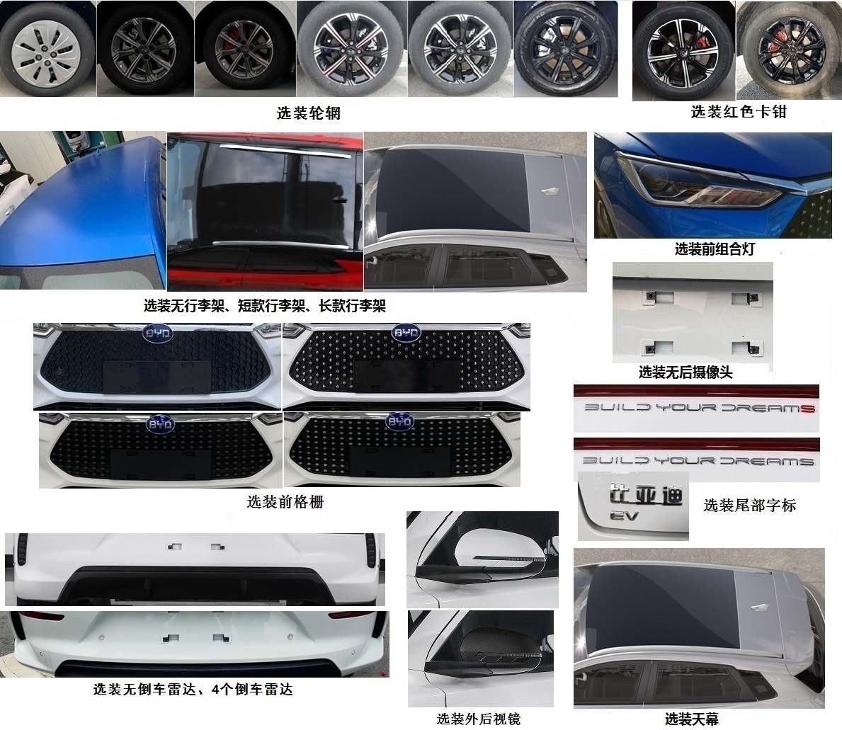 | 备注 | ABS型号:ESP;ABS生产企业:博世汽车部件(苏州)有限公司;储能装置种类:磷酸铁锂蓄电池;储能装置生产企业:重庆弗迪锂电池有限公司;选装部件名称及其相关描述:选装轮辋,红色卡钳,无行李架、短款行李架、长款行李架,前格栅,无倒车雷达、4个倒车雷达,外后视镜,无后摄像头,前组合灯,尾部字标,天幕,双色车身,与车身不同色扰流板、与车身不同色鲨鱼鳍,侧装饰件;其他说明:驱动电机类型:永磁同步电机,型号:TZ180XSA,额定功率:35kW,峰值功率:100kW,生产企业:长沙市比亚迪汽车有限公司;该车型可选装ETC车载装置; | ||
