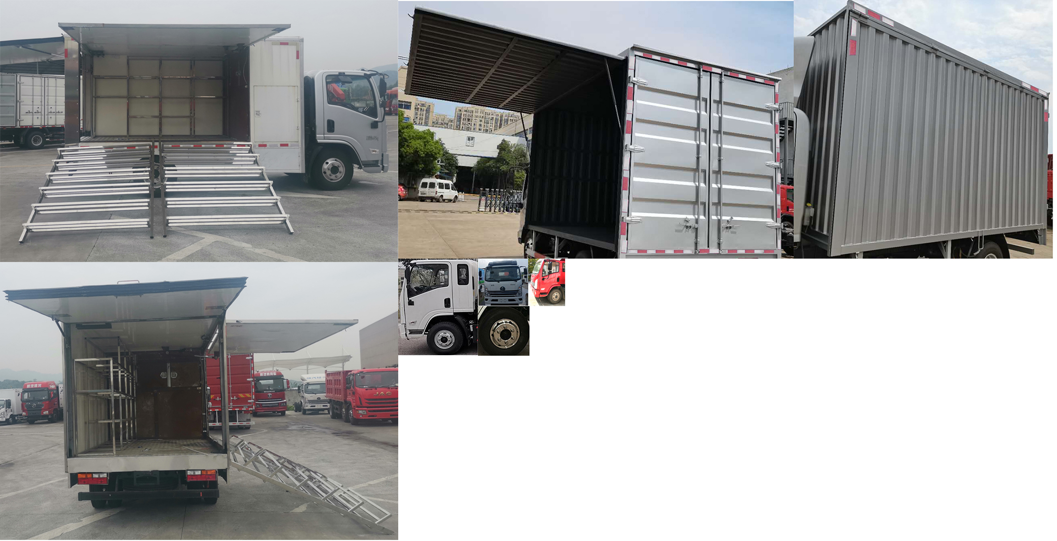 | 备注 | ABS型号:CM4XL-4S/4M;ABS生产企业:广州瑞立科密汽车电子股份有限公司;发动机净功率值:发动机/油耗(L/100km)对应关系:WP2.3NQ130E50/11.4,发动机净功率:WP2.3NQ130E50(92kw);选装描述:选装排半驾驶室,选装铝合金轮辋.可选装不同风格的导流罩,可选装不同风格的货箱.可选装不同风格的后视镜安装支架,选装不同风格的车辆后部照片.选装不同风格及材质的侧后防护装置.随底盘选装内置储气筒.可选装无备胎,可选装无前雾灯.尿素箱、燃油箱、蓄电池可随底盘选装不同安装位置,侧后防护装置可取消粘贴反光标识.该车型可选装车载ETC装置.;所用材料材质、连接方式以及后部防护装置的主要尺寸参数(断面尺寸和离地高度):裙厢结构侧防护材料Q235,侧防护离地高420mm.后下防护装置材料:Q345A,截面尺寸(mm)100×50,后防护离地高度(mm):440,480.连接方式:裙厢结构侧防护为焊接,选装其他形式侧防护装置时:侧防护材料Q235A,侧防护的连接方式为螺栓连接.后防护均采用螺栓连接。选装铝合金后防护时:后防护材料:铝合金6061-T6.连接方式:螺栓连接,后防护离地高度460mm.后部防护断面尺寸(mm):100×50;车厢顶部封闭且不可开启;专用功能及装置:该车用于流动售货的售货车,车厢侧面,后部可向上开启或部分开启,车厢内安装有货架,柜台等专用装置,该车主要用于蔬菜,水果等零售商品的售卖; | ||