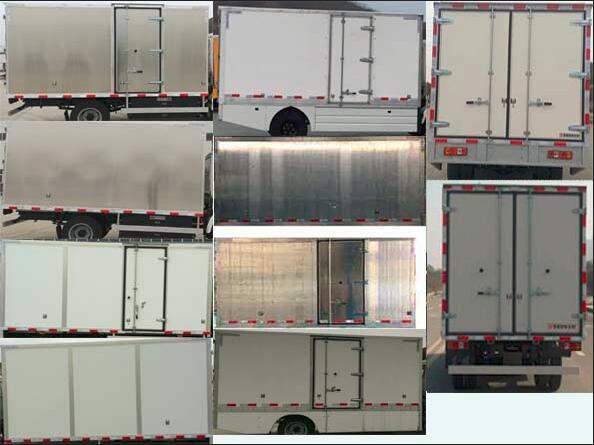 | 备注 | 1,随底盘选装导流罩,车厢顶部封闭不可开启.2,选装防护样式,选装不同的货厢结构,选装货箱侧面不开门, 单开门.3,防护装置材料为:铝合金,与车架采用螺栓连接,后下部防护装置断面尺寸(mm):100×30,离地高度:460mm.4,安装侧,后防护装置裙板结构,材料材质为Q235,后部裙板下缘离地高度为510mm.5,电池种类/生产企业:多元复合材料锂离子电池/广州鹏辉能源科技股份有限公司.6, ABS系统生产厂家/型号: 广州科密汽车电子控制技术股份有限公司/CM4YL,可在全国销售。 | ||