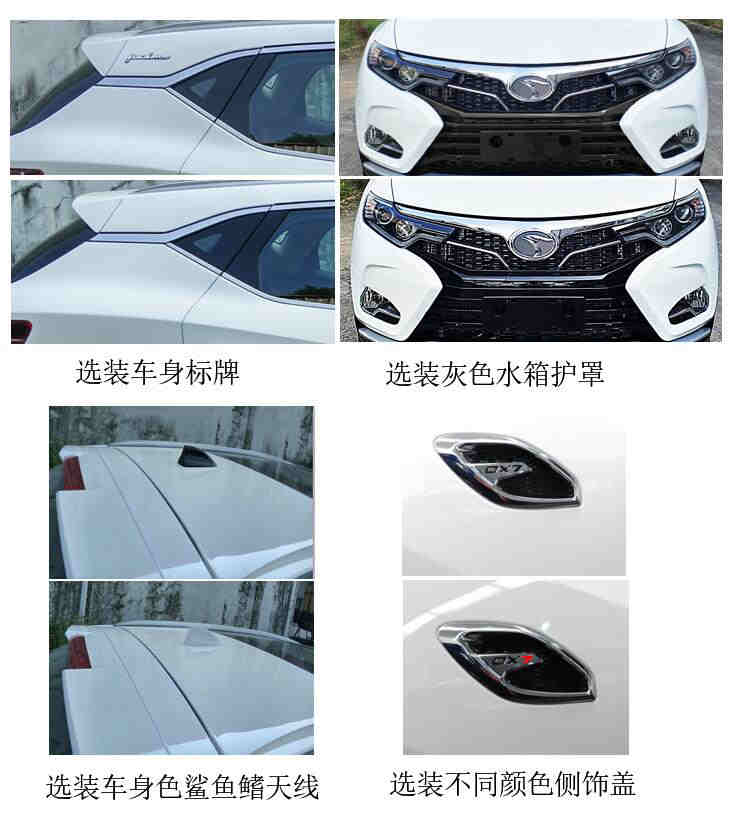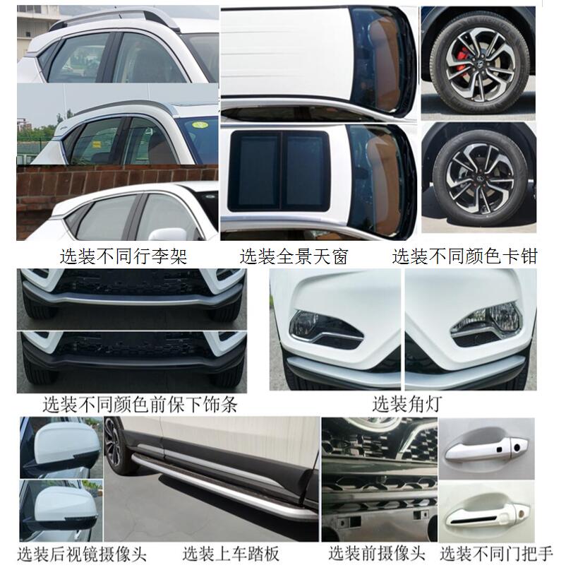 | 备注 | 选装:全景天窗,车顶行李架,前摄像头,后视镜摄像头,上车踏板,前保下饰条,不同门把手,角灯,不同颜色卡钳,车侧标牌,灰色水箱护罩,车身色鲨鱼鳍天线,不同颜色侧饰盖.。ABS 型号:MGH100 ,厂商:万都底盘部件(苏州)有限公司。发动机最大净功率:100kW。 | ||