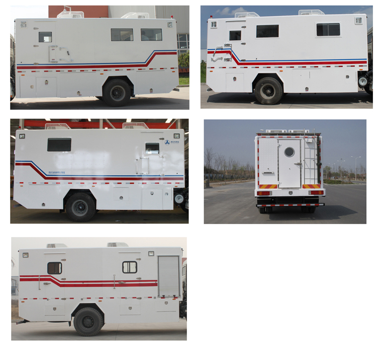 | 备注 | 该车为油田作业车,厢体内部加装有操作台,发电机组、数据采集系统、油田压裂控制系统等专用装置,其作用主要是用于油田压裂作业时的数据采集、实时监控、打印及数据分析等;该车侧防护为裙板式结构,离地高度480mm;后下防护截面高度为140mm,宽度为60mm;后下部防护装置的离地高度为490mm,后防护使用材料为Q235,螺栓连接;该车随底盘选装驾驶室;ABS系统生产厂家及型号分别为:西安正昌电子有限责任公司(型号:ZQFB-V),广州市科密汽车制动技术开发有限公司(型号:CM4XL-4S/4M),浙江万安科技股份有限公司(型号: VIE ABS-Ⅱ);该车选装箱体门窗位置,选装箱体后开门及后平台结构,选装后平台时整车长度为8980mm,对应后悬为2855mm;发动机最大净功率依次为194kw,223kw | ||