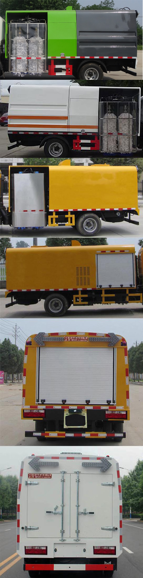 | 备注 | 选装箱体外观。选装后门结构。选装右边安装扫刷。ABS控制器厂家/型号:浙江万安科技股份有限公司/VIE ABS-Ⅱ;侧防护采用Q235-B冷弯型钢,螺栓连接,后下部防护装置材料材质:Q235-B,连接方式:焊接连接,断面尺寸(宽×高):50×120(mm),离地高度:400mm.该车用于对道路护栏进行清洗作用,主要专用装置为水箱和洗扫刷。 | ||