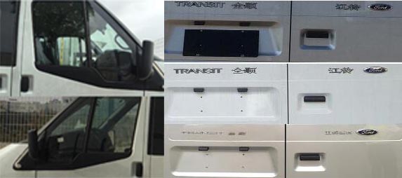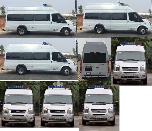 | 备注 | 1、随原车选装侧拉门、普通款前大灯、号牌板支架、尾部选装外部标识; 2、ABS型号:6C11 2M110 A*,生产厂家:博世汽车部件(苏州)有限公司; 3、选装后防撞杠,安装后防撞杠时对应该整车长度6643mm,后悬1960mm,离去角11°,不装后防撞杠时对应该整车长度6503mm,后悬1820mm,离去角14°; 4、发动机DURATORQ4D225H对应油耗值12.0L/100KM; 5、整车选装设备平台、云台摄像机、探索照明灯、升降照明灯、顶置空调 6、随原车选装高顶时:选装移动照明设备(带旋转摄像机)车高3160mm,选装移动照明设备(带普通摄像机)车高3070mm,仅安装警示灯、警示灯和空调或者警示灯和设备平台和时整车高度2875mm; 7、随原车选装低顶时:选装移动照明设备(带旋转摄像机)车高2925mm,选装移动照明设备(带普通摄像机)车高2835mm,仅安装警示灯、警示灯和空调或者警示灯和设备平台和时整车高度2640mm; 8、该车配备专用装置有囚笼、警示灯,主要用途是公安、司法机关用于押解运送服刑人员、嫌疑犯、在押人员等。 | ||