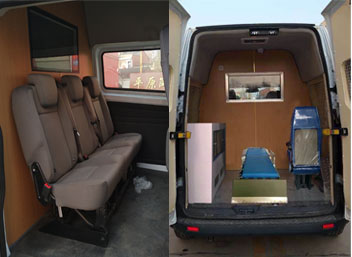 | 备注 | 该车主要用于运送伤残人士,车顶选装换气扇时候的高度为:2492mm.专用装置:内置担架一副。选装轮椅专用升降平台用于自动升降,方便残疾人上车。ABS系统控制器型号:EV5051,生产厂:博世汽车部件(苏州)有限公司。仅采用发动机型号DURATORQ4D205L对应油耗值分别为油耗 (L/100km):7.6。 | ||