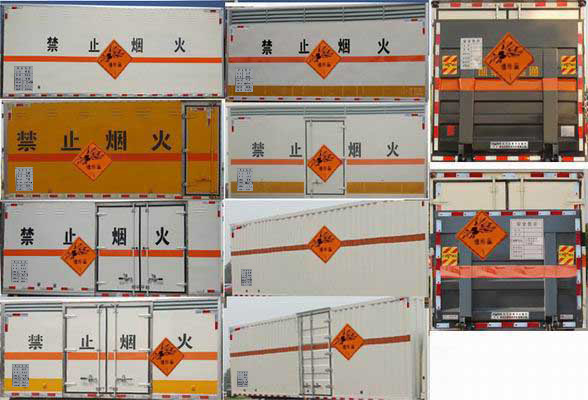 | 备注 | 1.厢体顶部封闭,不可开启;2.安装ABS,ABS型号/企业:ABS-E 4S/4M/威伯科汽车控制系统有限公司;3.安装限速装置,最高车速80km/h,安装前置排气管,前轮安装盘式制动器,仅选用子午线轮胎.安装具有卫星定位功能的行驶记录仪,安全装置为导静电带,用于防止静电;4.该车为危险货物运输车,车辆类型EX/Ⅲ型;运输危险品品名:专用烟火制品,烟花爆竹,类项号:1.1G,1.2G,1.3G,1.4G,1.4S.5.侧防护和后防护装置材料材质为Q235碳钢,左右侧面及后下部防护均采用焊接连接,后防护截面尺寸(mm):120×50,离地高度为500mm;6.仅选用轴距5100mm和4700mm的底盘;7.发动机型号与油耗申报值(L/100km)一一对应:ISD180 50/27.77,ISD160 50/27.77,YC4EG185-50/28.04,YC4EG170-50/28.04;8.整车长度(mm)/轴距(mm)/后悬(mm)/货厢长度(mm)对应关系:8800/4700/2760/6380;9000/5100/2560/6580;9.厢体侧面板选装不带侧门,不选装侧开门时整车宽度为2510mm.10.选装侧门型式及位置,选装不开侧门,厢体侧面板选装开百叶窗,选装瓦楞板结构,选装尾部标志板位置,选装液压升降尾板,选装液压升降尾板时收起状态的水平长度为300mm, | ||