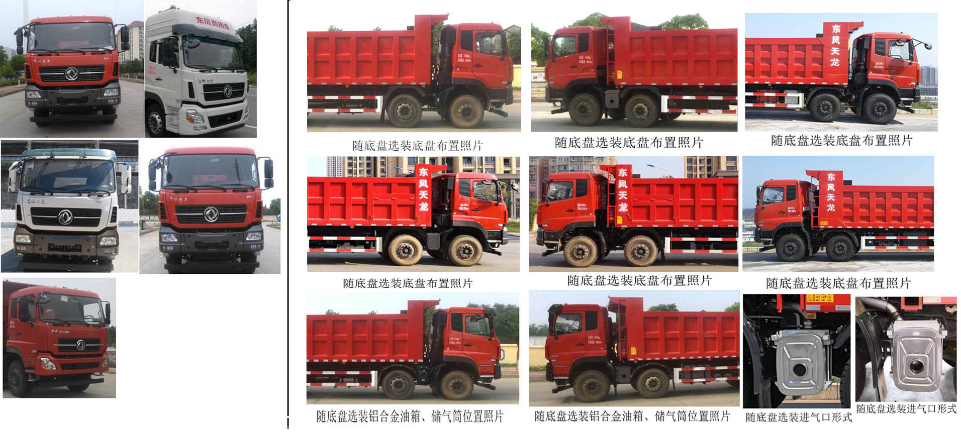 | 备注 | 1、自卸方式为后卸式。选装不同形式的货箱结构和环保上盖结构,随底盘选装保险杠及“天龙KC”标志,随底盘选装高顶驾驶室,选装遮阳罩结构,选装驾驶室顶部中间不带三个装饰灯;2、防护的材料为Q235,侧防护、后防护均采用螺栓联接,后防护的离地高度为470mm,断面尺寸为120mm×50mm;3、整车外形长(mm)-轴距(mm)-后悬(mm)对应关系:11750-(2050+4600+1350)-2250;11550-(2050+4600+1350)-2050;11350-(2050+4600+1350)-1850; 11750-(1850+4600+1350)(2050+4400+1350)-2450;11550-(1850+4600+1350)(2050+4400+1350)-2250;11350-(1850+4600+1350)(2050+4400+1350)-2050;11150-(1850+4200+1350)(2050+4000+1350)-2250;11150-(1850+4600+1350)(2050+4400+1350)-1850;10950-(1850+4200+1350)(2050+4000+1350)-2050;10950-(1850+4600+1350)(2050+4400+1350)-1650;10750-(1850+4200+1350)(2050+4000+1350)-1850;10750-(1850+4600+1350)(2050+4400+1350)-1450;10550-(1850+4200+1350)(2050+4000+1350)-1650;10350-(1850+4200+1350)(2050+4000+1350)-1450;4、该车安装具有卫星定位功能的行驶记录仪;5、ABS生产厂家:东科克诺尔商用车制动系统(十堰)有限公司;型号:3631010-C2000;6、发动机dCi385-51;dCi420-51;dCi350-51;dCi450-51对应的油耗值均为45.0L/100km。 | ||
