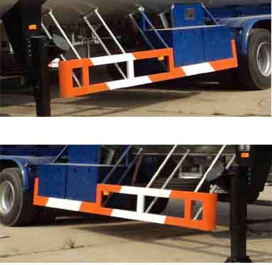 备注 罐体容积为57.5立方米,罐体外形尺寸:总长12840mm,外径为2496mm。选装罐体:容积为58.14立方米,罐体外形尺寸:总长12788mm,外径为2494mm。介质品名为丙烯,类项是2.1。选装罐体对应的轴距为7400+1320+1320(mm),对应的整备质量为15000(Kg), 对应的额定载质量为25000(Kg),对应的后悬为1250(mm),对应的离去角为23度。ABS系统生产厂/型号:广州瑞立科密汽车电子股份有限公司/CM2XL-4S/2M;威伯科汽车控制系统(中国)有限公司/4005000880。选装轮胎护板上部的圆柱形箱体,罐体后部选装爬梯;罐体液位计可选装在罐体侧面或后部,液位计可选装外露式或沉入式;该车后部灯具、号牌板和尾部标志板的安装位置可选装(见选装照片);罐体顶部附件选配见照片。危险车辆类型FL。采用适用于牵引危险品运输半挂车的牵引车。侧面防护装置的材质是铝合金,后下部防护装置的材质是Q235,连接方式(侧面是螺栓连接,后下部是焊接),后下防护装置的截面高×宽(mm)为120×50,下边缘离地高为490mm。