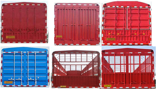 | 备注 | 车厢底板至仓栅顶部高度及对应总高度为1800mm(3080mm,3150mm),2000mm(3280mm,3350mm),2200mm(3480mm,3550mm),2400mm(3680mm,3750mm),2600mm(3880mm,3950mm).选装前档样式,选装打孔大梁,选装后部灯具样式.选装号牌样式,选装后门样式(花栏式后门,对开式半封闭后门,对开全封闭样式为横瓦楞,竖瓦楞后门)及侧面花栏结构(二层仓栅,三层仓栅,对开门锁杆,对开门半截锁杆,隐藏锁杆).车长/牵引销至车辆最前端的距离/轴距/后悬尺寸对应关系:13000/1200/6880+1310+1310/2300,13000/1300/6780+1310+1310/2300,13000/1400/6680+1310+1310/2300,12500/1300/6480+1310+1310/2100,12000/1300/6280+1310+1310/1800,ABS:型号:HNABS-4S/2M;生产厂家:山东海纳汽车科技有限公司.防护材料均采用Q235B,与车身的连接方式为焊接,后下部防护装置的断面尺寸(mm):140×50,离地高度480mm. | ||