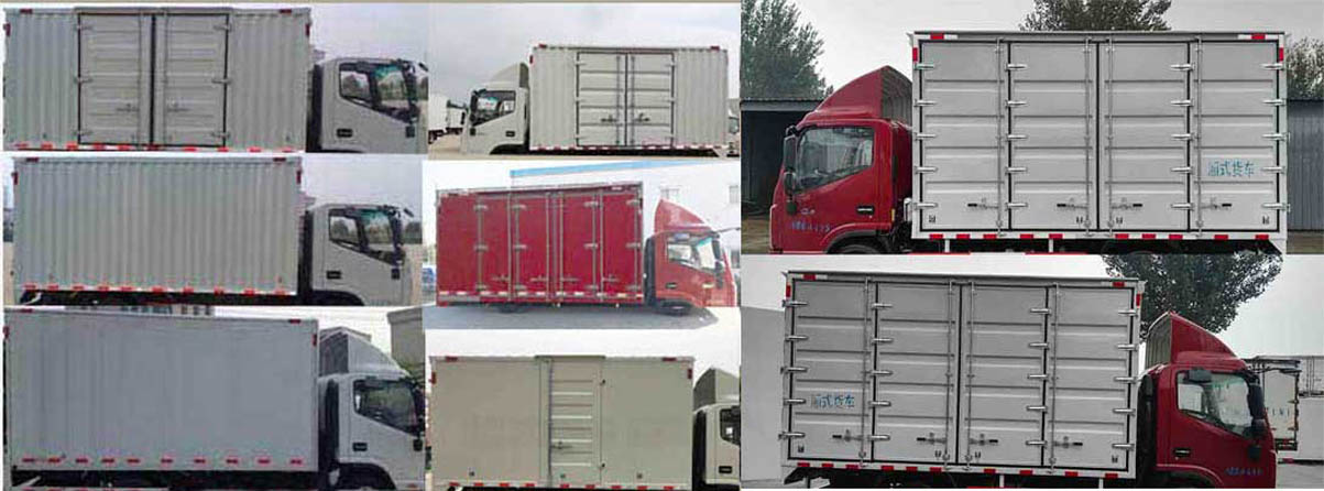 | 备注 | 1.车厢顶部封闭不可开启,选装导流罩;2.选装右侧双开门货厢以及不开门货厢、单开门和四开门货箱,货厢材料可选用瓦楞板,铁平板,铝平板,彩钢板,选装货箱左右两侧开门,选装不同形式后门(双开/三开门/平板/瓦楞)及不同形式门锁,选装左右两侧开门;3.随底盘选装排半驾驶室;4.发动机WP3NQ150E50,4JJ1GD,ISF3.8E6154对应的油耗申报值(L/100km)为12.4,12.6,12.3;5.侧面及后下部防护装置材料为Q235,连接方式为螺栓连接,后部防护装置断面尺寸(长×宽):130mm×30mm,离地高度为480mm;6.选装液压尾板,尾板收起状态的水平长度为295mm;7.ABS控制器型号/厂家:ABS 8/克诺尔制动设备(上海)有限公司;8.选装侧防护,选装后防护,选装的侧面及后下部防护装置材料为Q235,连接方式为螺栓连接,选装的后部防护装置断面尺寸(长×宽):120mm×60mm离地高度为490mm. | ||