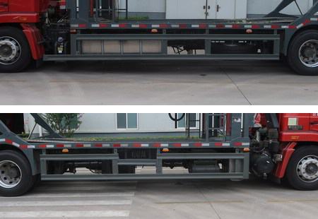 | 备注 | 1.仅可运送乘用车;2.该车可拖拽挂车,准拖挂车总质量16000kg,18000kg,17000kg,15000kg;中置轴挂车的牵引杆深入量1020,1060mm,1760mm,中置轴牵引杆连接器最大垂直静载荷1000kg;3.侧后防护参数:侧面防护材质Q235,连接方式为螺栓连接;后防护参数:后防护截面尺寸为140mm×80mm,材质Q235,连接方式为螺栓连接,离地高度为430mm;4.ABS系统生产厂家:威伯科汽车控制系统(中国)有限公司,型号:446 004 6300;5.安装具有卫星定位功能的行驶记录仪;6.发动机且油耗关系对应如下:MC07.31-50/29.5,MC07.34-50/29.5;7.仅选用4/-,9/-,3/-,11/-,4/5,4/9+6,9/9+6,3/4,3/5,3/9+6,3/9+8,4/9+8,11/9+8钢板弹簧片数;8.选装平台操纵阀安装位置,选装上层平台护网支腿数量. | ||