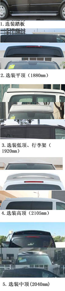 | 备注 | 装备办公设备、内饰、车内配备移动通讯设备等专用设备.随原车选装氙气前照灯、天窗、手动左滑门、电动滑门,选装前后包围、侧面侧裙,高低装饰顶,翼子板,内饰,车内配备移动通讯设备,活动办公桌等专用设备.随原车选装氙气前照灯,天窗,手动左滑门,电动滑门,随底盘选装前雾灯,前格栅镀铬条,车身同色后视镜.选装前后包围,侧面侧裙,高低装饰顶,翼子板装饰件,轮毂,格栅.选装平顶时车辆高度1880mm,选装低顶、带行李架车高1920mm;选装中顶装饰顶车辆高度2040mm,选装高装饰顶时的车辆高度为2105mm.选装侧面踏板.选装前后包围时的车辆长度为5420mm.选装车厢与驾驶室的中间隔屏,可安装车内洗手设备等.带OBD.ABS系统型号/生产厂家:ESP9/博世汽车部件(苏州)有限公司. | ||