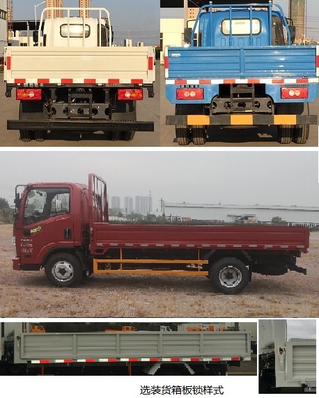 | 备注 | 1、选装货箱样式,选装排半驾驶室:货箱尺寸(mm)对应为为:3825×1950×400,3755×1940×380,3755×2050×380,3755×2100×440;2、侧面及后下部防护装置材料为Q235,连接方式为螺栓连接,后部防护装置断面尺寸(长×宽):120mm×50mm,离地高度为470mm;3、发动机最大净功率为83Kw;4、ABS厂家:广州科密汽车电子控制技术股份有限公司,ABS系统控制器型号:CM4XL-4S/4M;5、选装示廓灯。 | ||