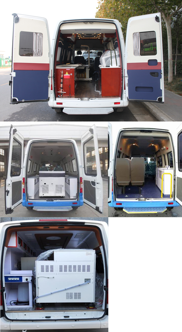 | 备注 | 1.高顶状态下,安装选装换气扇时整车高度为2705mm,安装不同形式顶置市电空调时整车高度分别为2900mm或2820mm;中顶状态下,安装换气扇时整车高度为2500mm,安装不同形式顶置空调时整车高度2590mm,2690mm; 2.左右两侧均可选装遮阳蓬,可选装可折叠式LED灯箱,顶置空调,喇叭,照明灯及广场照明灯等专用设备;3.可随原车选装钢轮圈,天窗,推拉侧车窗,侧踏步,牌照装饰板,不镀铬水箱面罩,全镀铬水箱面罩,前围,图形商标,后轴空气悬挂系统,左侧滑移门;可选装有卫星定位功能的行驶记录仪;4.该车型可以选装前雾灯;5.选装后踏步时整车长度为5910mm;选装不同型式的一体式后踏步(选装一体式后踏步整车长度5785mm,后悬1070mm);6.选装不同的专用设备可引起整备质量变化,整备质量为2500kg或2690kg时,对应额定载客2-9;整备质量3350kg时,对应额定载客2-6;7.该车装有医疗柜器械柜,血压计,紫光灯等,用于医疗诊断,健康体检等;8.ABS生产企业:博世汽车部件(苏州)有限公司,博世汽车部件(苏州)有限公司,ABS型号:ABS 9.0,ESP9;发动机最大净功率:97.5kW; | ||