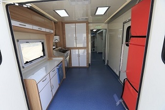 | 备注 | 1.该车装有手术床、无影灯、医疗器械柜等医疗专用设备,主要用于医疗手术等功能;2.箱体顶部封闭,不可开启.该车在行驶状态下外廓尺寸不变,箱体两侧能够扩展;3.采用1800+4575+1400mm轴距底盘;4.该车侧后防护均由裙板结构替代,可豁免,后部结构离地高度440mm;5.ABS系统型号为4460046300,生产企业为威伯科汽车控制系统(中国)有限公司。 | ||