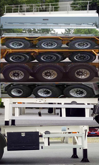 | 备注 | 罐体有效容积为42.6立方米,运输介质(密度)千克/立方米: (120#,150#,190#)溶剂油(780),环己烷(780),二丁醚(770),石脑油(760),类别:3类,危险货物运输车辆的类型:FL;罐体总长(mm):11430,最大段(直径×长)mm:2280×7670,最小段(直径×长)mm:2080×3010,中间段长为750mm; ABS系统生产企业:瀚德汽车产品(苏州)有限公司,型号:4S/2M;左右防护采用Q235材料,与车架螺栓联接;后防护采用Q235材料,与车架焊接一体,后部防护装置的断面尺寸(mm)100×100(高×宽),离地高度520(mm);采用适用于牵引危险品运输半挂车的牵引车; 选装挡泥板,紧急切断阀位置,顶部走台活动扶手.选装(空气悬架、铝合金侧防护,与车架螺栓连接、铝合金或不锈钢材质的工具箱和阀门箱、侧面灯具位置). | ||