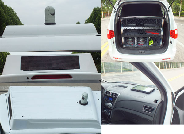 | 备注 | 该车安装云台一体机,车顶平台,移动警务终端,装配设备柜,用于治安巡逻.ABS系统生产厂家为博世汽车部件(苏州)有限公司,对应的型号为3550AEM,3550AB3.发动机最大净功率为80kW. | ||